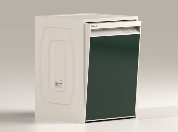 将它们洗衣机垂直放置使得难以在有限的地面空间区域使用。所以产品设计为了解决这个功能性的室内问题,Hyun Yeol Shin 设计了Tilt,一台可以自由安装(水平和垂直)的洗衣机,最好的部分是洗衣槽向你倾斜,所以不再疯狂弯曲或蹲下!