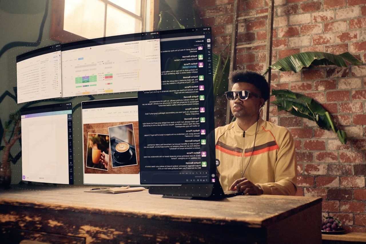 这种格式非常独特,但并不奇怪。大多数ARR/VR耳机带有遥控器,目标是娱乐和浸入。事实上,空间顶部G1选择了一个接近笔记本电脑风格的格式,这意味着学习曲线的减少。打开眼镜,在你面前打开多个虚拟屏幕,开始工作。空间顶G1拥有一个100英寸大的虚拟工作空间,打破了传统笔记本电脑的局限性。想象一下处理文档,浏览网页,或者在一个像家庭影院屏幕的虚拟画布上编辑视频。这个宽敞的工作空间允许轻松的多任务处理和真正的沉浸式计算体验。
