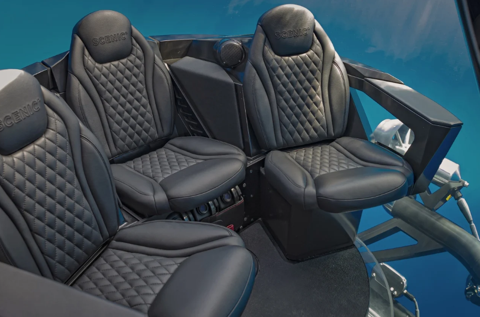 与U-Boat更私人的潜艇不同,Nexus是为团体旅行设计的,总共可容纳9人。这个数字有点混乱,因为它指的是里面的最大座位数。不过,有一个座位会立即留给飞行员,两边有两组六把成人座椅。第八把成人座椅可以换成两个儿童座椅,这就是这个数字的来源。